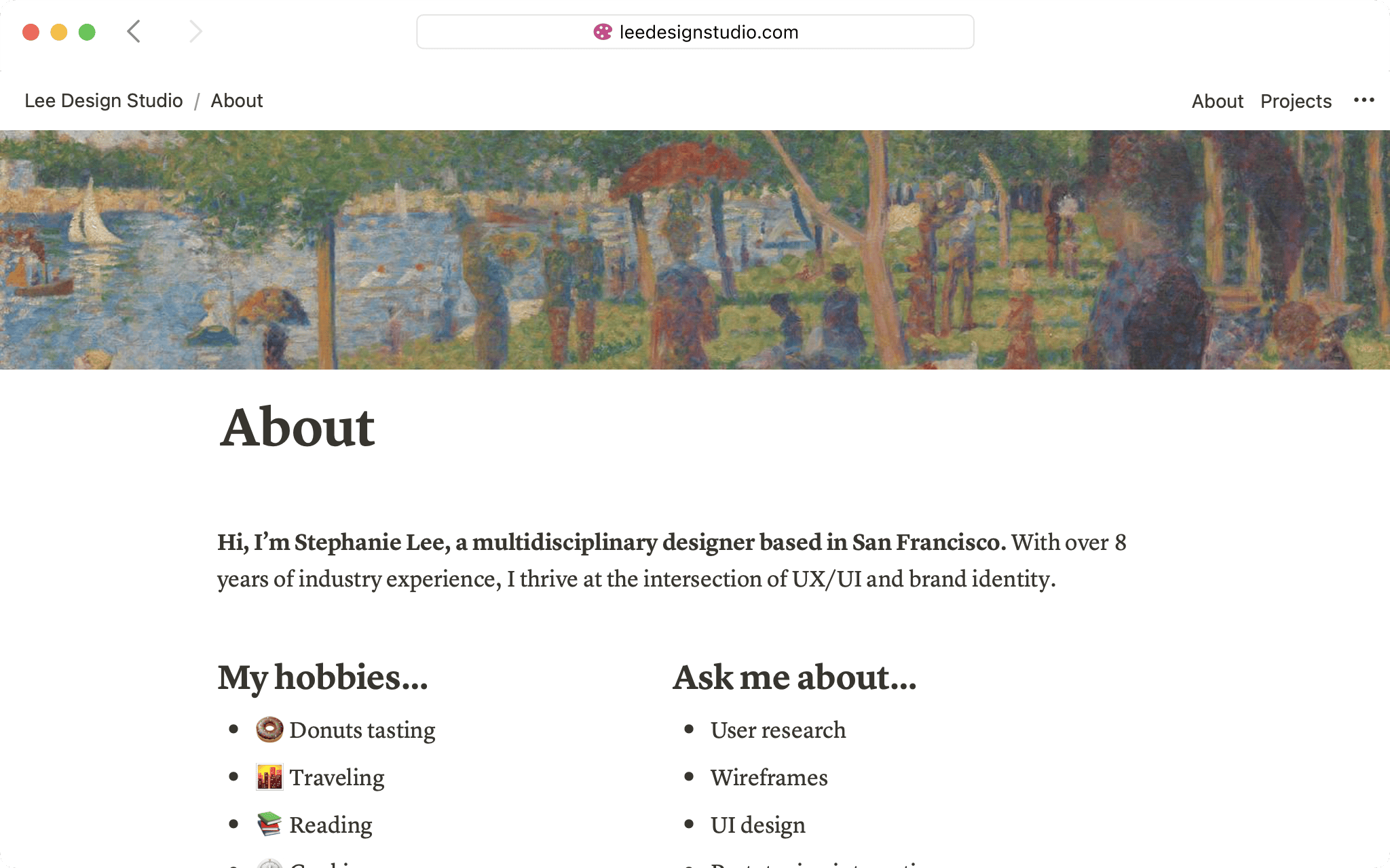 Conecta un dominio personalizado o elige un dominio de Notion gratis.