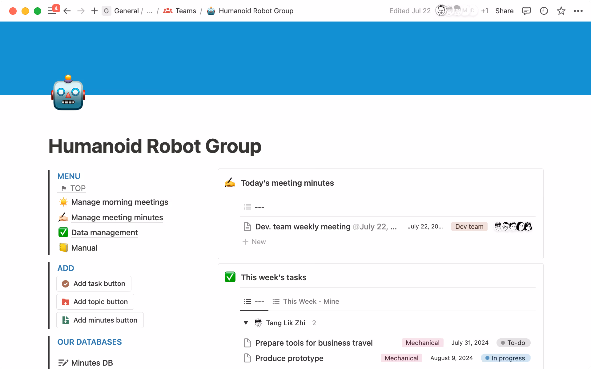 Le groupe responsable de la R&D sur les robots humanoïdes n’arrivait pas à gérer les comptes-rendus et les informations générales de leurs réunions, car tout était éparpillé à différents endroits.