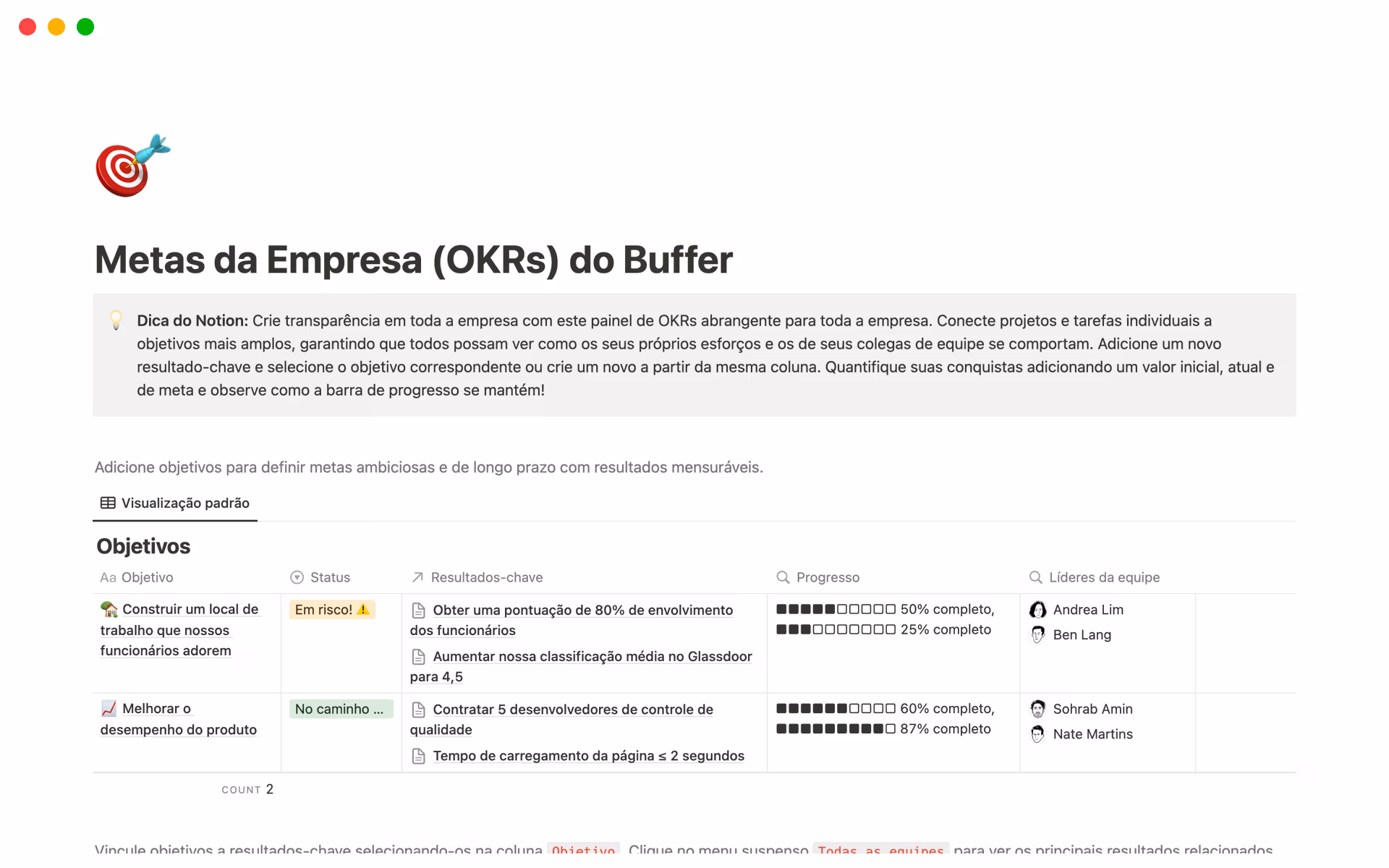 Pro tip: Use the template in the Personal OKRs database to create an outline of your objectives, then draft possible key results and how to quantify them.